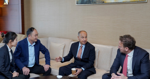 双方在友好愉快的氛围中畅谈,赵密升对侯赛因总干事、Brent Novicki来到杭州表示由衷的欢迎与感谢,并诚挚邀请侯赛因总干事和Brent Novicki到纽恩泰参观,对方也表示今后将就空气能产业与纽恩泰建立更广泛、更深入的长期合作。