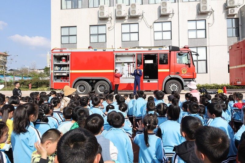 为培养学生的消防安全意识,预防和减少突发公共安全事件对未成年人的伤害,进一步加强校园消防安全,营造安全、稳定、和谐的校园环境,全面提高广大师生的消防安全意识,保障师生的生命财产安全,在春光明媚的三月,城中区消防救援大队联合公安派出所、交警、司法局、团委等部门,走进景行小学、景行小学河东校区,广泛开展“消防宣传五进暨开学第一课安全进校园”的主题活动,让一场充满知识性与趣味性的消防安全知识走进校园。