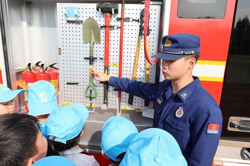 为了加深学生们对知识的掌握,让同学们能更近距离地了解消防,消防员还将消防车开进了校园,宣传人员还介绍了一些常用消防器材的使用方法,讲解了各种灭火救援器材装备的使用方法。在消防员的引导下,同学们参观了消防车,消防员耐心地向学生介绍各种消防装备、消防器材在抢险救援及灭火救援灾中的使用,让学生们可以近距离体验各种消防设施,有利于全面增强师生消防安全素质。