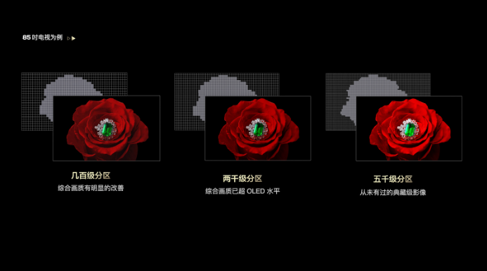 此前Mini LED电视的顶级产品,背光分区和峰值亮度的数值也就在2000~2500之间,而TCL X11G则最高做到了5184个背光分区和5000nits超高峰值亮度,“双5000”的配置同时出现在一款电视上,这在行业内是首次出现,意味着其在电视明暗对比度、光晕控制等方面都将更加纯粹与极致,甚至比以对比度优势而著称的OLED电视都将更为出色。