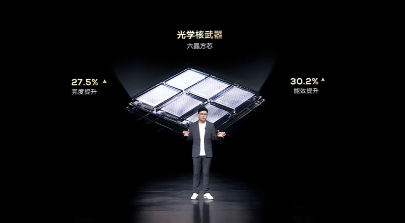 要达到5000nits的峰值亮度也并不容易,像是在TCL X11G上就创新性地采用了行业突破性的六晶方芯,相比传统普通的Mini LED芯片,六晶方芯将以往Mini LED发光芯片的发光点从2个提升至6个,在亮度方面有了27.5%的提升,能效表现也有30.2%的提升,结合16bit超精密背光控制,能够呈现更多的画面细节,亮得更耀眼、暗得更深邃,成就了双5000的典藏级影像。