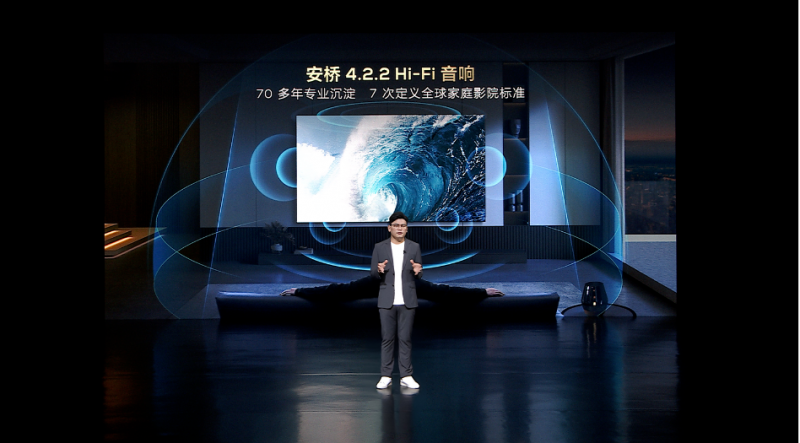 当然,仅仅有优秀的画质表现还不够,此次TCL X11G还带来了全新升级的4.2.2声道Hi-Fi音响,拥有高达80W的超大功率与4颗独立的功放芯片加持,加上特有的星环声道结构与双重AI自适应功能,实现了传统水平发声全面升级为前后左右包括头顶的360度全方位的立体音效,达到媲美影院的视听体验。