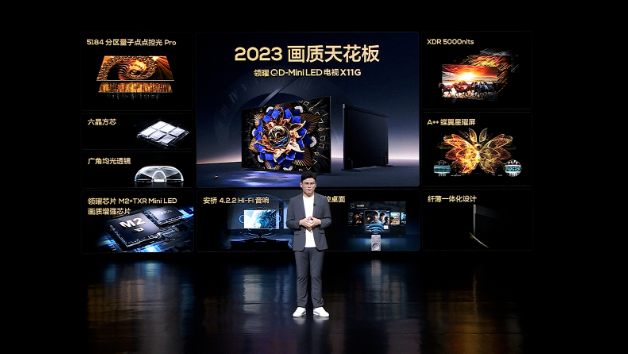 最后就是TCL X11G,这是TCL刚发布的全球第一台“双5000”标准QD-Mini LED电视,拥有XDR 5000nits、5184个背光分区、5000万:1的超高对比度,并采用了A++蝶翼星曜屏、领曜芯片M2+TXR Mini LED画质增强芯片等等画质配置。