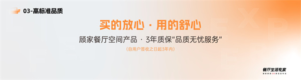 品质是影响消费决策的重要因素,但产品品质的好坏需要时间来验证,购买产品后出现品质问题成为消费者心中的一大疑虑。为了让消费者买得放心、用得舒心,在《顾家家居餐厅空间品质标准》启动后,顾家家居推出了餐厅空间售后无忧服务,为消费者带来产品品质与服务承诺的双重保障。