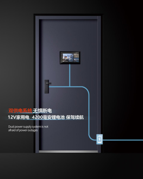 玥玛智慧门新品采用低压直流的方式确保安全、持续、稳定的供电,同时配置4200mAH的锂电池实现双供电系统,即使断电仍可续航7天,24小时全天候“持续在线”,真正冲破了智能安防产品用电的桎梏。