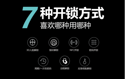 从安装那一刻开始,涵盖不同风格的样式定制,适合不同尺寸的门框需求,玥玛智慧门帮你打造极具个性的专属门面;从进门那一刻开始,远程开锁、3D结构光人脸识别开锁、密码开锁、指纹开锁、NFC开锁、周期密码开锁以及应急钥匙开锁,玥玛智慧门用七种不同的开锁方式,给你足够的选择自由。