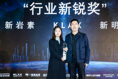 ▲新岩素荣获红星美凯龙岩板·掘金计划“行业新锐奖”