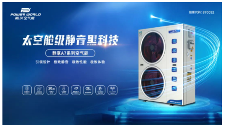 2022年3月,派沃空气能静享A7系列·空气能成功研发并上市,2022年4月8日,派沃空气能重磅新品(太空舱级静音黑科技)—静享A7系列·空气能,全球直播首发,线上发布会引爆热度!
