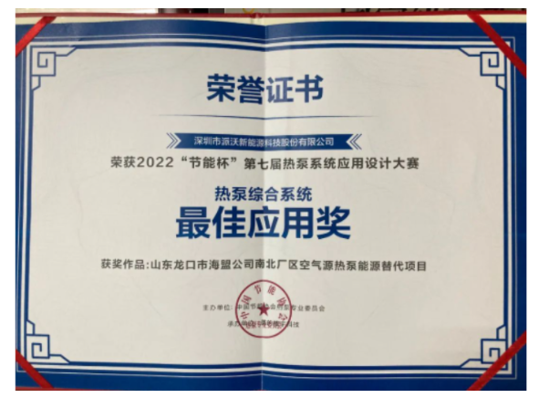 2022年7月27日,荣获2022“节能杯”第七届热泵系统应用设计大赛-最佳应用奖。
