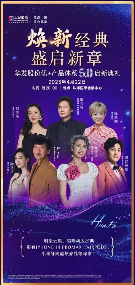 用歌声讲述经典故事,用音乐见证品质焕新。4月22日晚8点,珠海国际会展中心,华发股份优+产品体系5.0启新典礼共同见证华发新一代优+产品体系焕新而来。