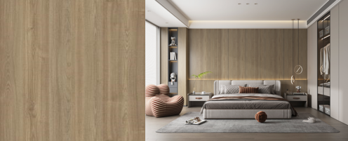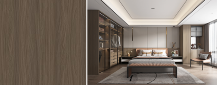 朗月胡桃温润厚实,直纹晓畅通达,带着些许缱绻的半山纹圆润内敛,温润细腻的半透质感,花色融入胡桃木纹带着含蓄优雅的朦胧美感,为空间营造出温暖而不失稳重的氛围。朗月清风和煦带来淡然的心境,演绎着静谧惬意的生活方式。