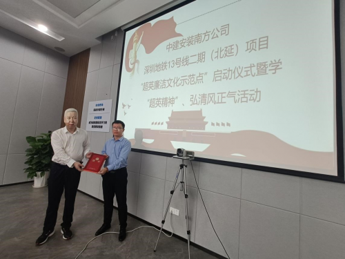 为更好地推动党风廉政建设工作,一体推进“不敢腐、不能腐、不想腐”体制机制建设,全面从严治党向纵深发展。4月25日下午,中建安装南方公司深圳地铁13号线(北延)项目召开“超英廉洁文化示范点”启动会。中建安装南方公司党委副书记、纪委书记、工会主席吴国章出席会议并讲话,启动仪式由项目执行经理陈太德主持。