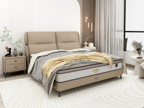 东宝软床DBPC114使用头层牛皮匠心制作,纹理褶皱凸显真皮质感,触感柔顺,亲和肌肤,在不经意间给人以温暖的呵护。软包厚实饱满,回弹性强,结合人体工程学设计,使靠背与人体背部曲线更好贴合,满足现代都市人群的睡前仪式感。