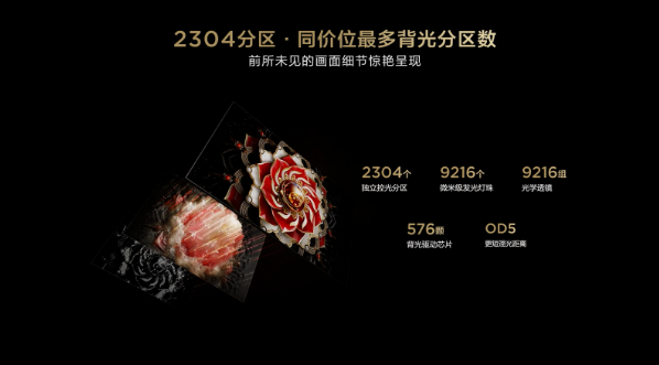 当然,除了软件方面的优化之外,此次TCL Q10H在画质硬件表现上也是同级别中的佼佼者。像是在大家比较关心的背光分区数量上,这次TCL Q10H就搭载了最高2304个背光分区,要知道一般旗舰电视分区数量仅有1000左右,TCL Q10H实现了旗舰电视分区数量的翻倍提升。在两千级的背光分区加持下,TCL Q10H拥有更为优秀、精准的控光能力表现,能够有效减少光晕问题。