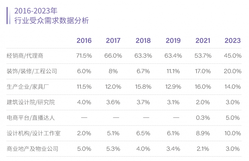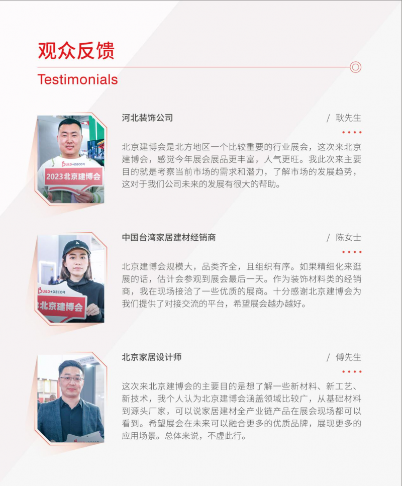 中国整体经济环境进入新常态,增速放缓,地产行业也由过去的黄金期进入白银期,新交房数量减少,存量房达到高位,精装房占比增高。家居产业作为地产的配套产业,随之发生了改变,传统实体店的客流减少;网络消费成新动力;全民消费观念、审美水平在提高,设计师的话语权在提升。2023北京建博会在巩固提升传统经销商观众数量与质量的同时,大力拓展设计师/设计机构、装饰工程公司、电商及酒店/医院等板块,帮助企业进行渠道升级变革,应对市场变化。