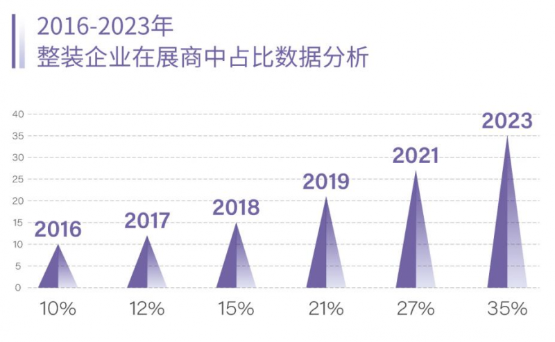 在北京建博会历年参展企业中,整家定制企业比例增幅较大,比如门墙柜一体化、顶墙一体化、橱衣木一体化等。