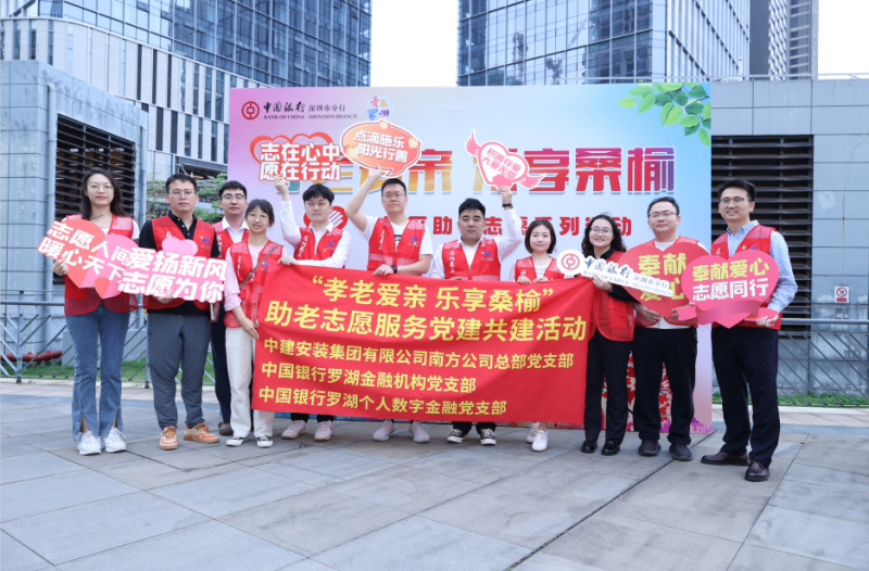 近日,中建安装集团有限公司南方公司联合罗湖团区委、中国银行深圳市分行团委、中国银行深圳罗湖支行团总支在笋岗街道初心公园开展党建联建活动。该活动以“孝老爱亲,乐享桑榆”为主题,通过志愿服务市集的创新形式,现场开展了助老便民服务,有效营造了尊老爱老的良好社会氛围。罗湖团区委书记马越、中行罗湖支行党委书记、行长邓增良、中行深圳市分行团委书记李姿睿、中行罗湖支行高级客户经理何霄、南方公司党建工作部经理华飞等出席活动。