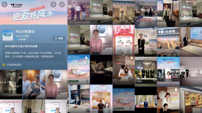 值得一提的是在「520炼爱纪」活动中,V6家居趁热邀请高叶录制「520炼爱纪」视频,以明星影响力带活动热度,多圈层KOL热情回应及参与话题讨论,终端门店流量提升,成功将明星影响力赋能到门店、形成转化。
