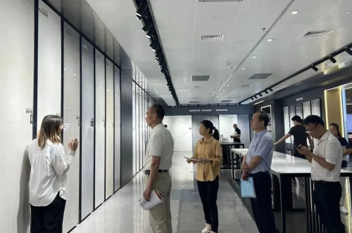 ▲第19届新锐榜评审团莅临箭牌瓷砖总部展厅考察