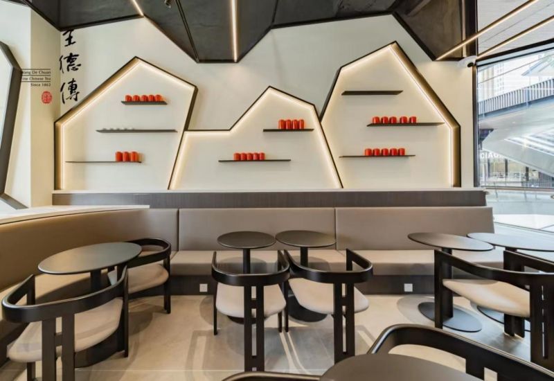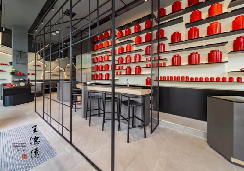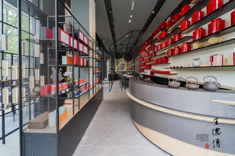 王德传茶庄中国区「茶馆旗舰店」,店内装潢风格简洁时尚,同时在空间设计上完整展现中国当代文人优雅风范,结合了茶叶零售、传统工夫茶与新式茶歇的业态形式,融合了伺茶、奉茶、饮茶的多样性活动,透过听觉、视觉、嗅觉、味觉等感官体验,展演当代文人多元丰富的美好生活。即使不买茶,只是到茶馆品尝一杯新茶,在放松身心的同时,也可以享受与朋友交谈的欢快,是约会与静坐的理想场所。