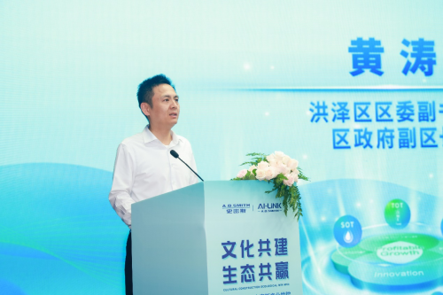 在主旨发言环节,淮安市洪泽区委副书记、区政府副区长黄涛在致辞中表示,洪泽是生态福地也是发展热土,AO史密斯产业学院落地于此,实现了运营链和产业链的精准对接,他寄语此次共建活动能碰撞出深化合作发展的新观点新思路。