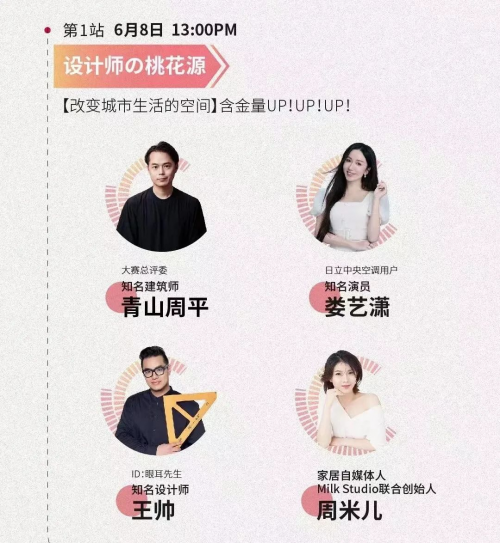设计大咖云集,创意思潮碰撞。6月8日,日立将在设计上海上演一场大动作,盛邀著名建筑师、日立Hi-Design大赛总评委青山周平;知名演员、日立中央空调用户娄艺潇;知名设计师(ID:眼耳先生)王帅;家居自媒体人、Milk Studio联合创始人周米儿等明星大咖,用一场高质量的论坛,呈现一场引爆东方美学的时尚潮流。