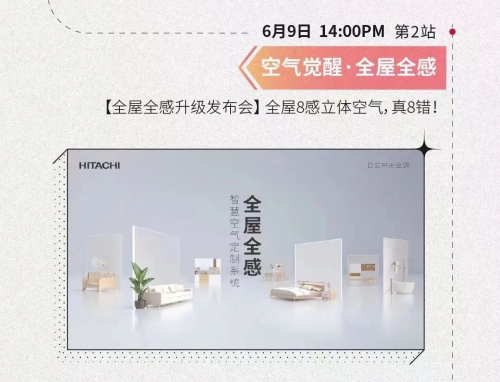 从“千人千面”到“全屋全感”,日立始终以用户需求驱动产品的创新升级。6月9日14:00,日立将再次升级发布 “全屋全感”智慧空气定制系统,带来全屋8感立体空气,持续探寻理想空气的全新篇章。期待与大家身临其境,一探究竟!