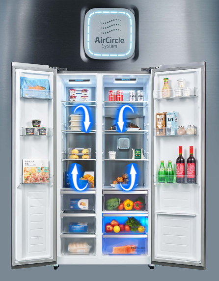 食材的鲜润水分,决定了它的口感。Beko倍科610L大容量对开门冰箱,冷藏室微风道风冷设计,冷气不直吹,更有利于食材保湿;AirCircle空气循环系统,搭配金属匀冷背板,制冷更快更均匀。冷冻室的设计也是别具一格,多风口设计,使得冷量均匀且迅速穿透各隔层的食材,速冻新鲜;自动除霜,省去手动除霜的烦恼。