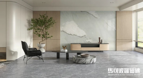 2023年,马可波罗瓷砖抓住“雅奢”这一关键词,推出马可波罗e-stone4.0系列颜值新品,为消费者开启雅奢新生活。高贵质地,光感舒适,完美地呈现出玉石通透的质感,打造出磅礴大气的空间氛围。