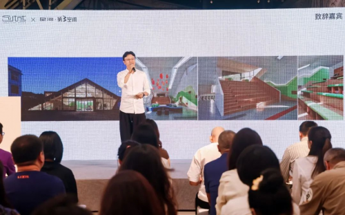秦岳明先生作为深圳市室内建筑设计行业协会代表上台做了讲话。他代表协会对于第三空间卓域楼公益计划的开展给予了充分的肯定和支持,也希望行业内能有更多的爱心企业和爱心人士共同参与到公益事业中来,用设计支持乡村美学教育。