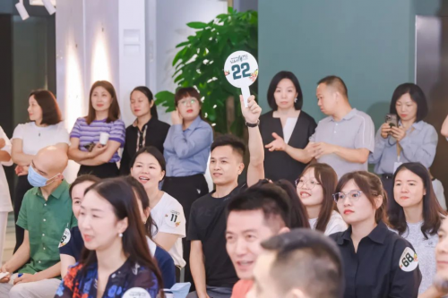 本次活动的亮点之一是,设计大咖与星河第三空间爱心商户作为搭档化身拍卖师,共同主持不同主题的画作拍卖。台上四组拍卖师组合风格各异,各有亮点。其中属陈岩老师组合最为让台下观众印象深刻,他的主持风格幽默风趣,热情洋溢。对每一幅作品的解读,从专业的美学知识,到人生哲理,引发了在场观众对作品更深层次的思考。整个拍卖会持续了两个多小时,现场生动而有趣,气氛火热,台下的观众踊跃举牌,50余幅作品一拍而空。