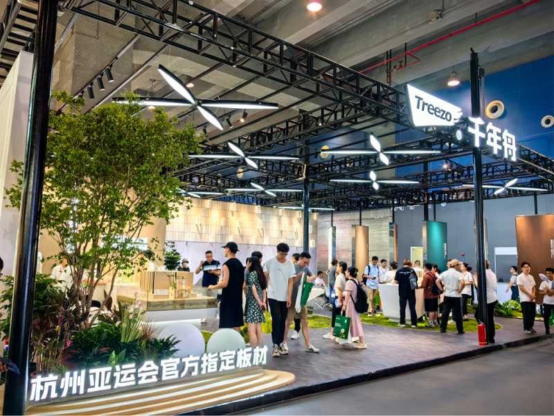 千年舟本次的展厅设计中,“杭州亚运会官方指定板材”元素也极为醒目,高品牌价值、高环保理念、高品质意识,全方位的环保与质量把控,千年舟的品牌理念与杭州亚运会的办会理念——“绿色、智能、节俭、文明”不谋而合,成为“亚运会官方板材供应商”自然顺理成章。