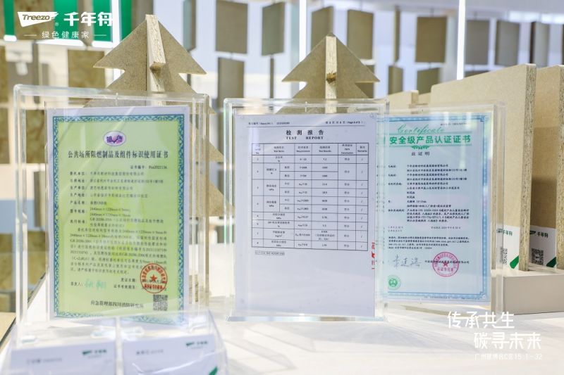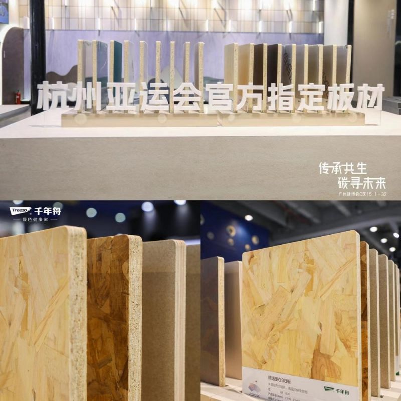 成立研究院,获得CNAS认证,斩获多项发明专利、实用新型专利及外观专利,参与新国标制定,凭借高标准、严要求的优质板材和加工技术,在产品层面千年舟也一直引领着行业的绿色变革。而本次广州建博会OSB/LSB素板、刨花板、饰能板、F-OSB等千年舟新品、明星产品也再次强势出圈,引领绿色潮流。