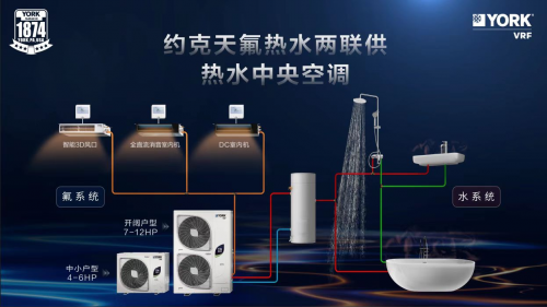 其实,安装热水系统不是一个单选题,约克VRF天氟热水两联供系统热水中央空调,将中央空调与全屋热水功能合二为一,在中央空调开启的同时,运用热回收“黑科技”,供应全屋热水,一整套的全屋空调+全屋热水的解决方案省时省心,享受夏季清凉的同时随心所“浴”。