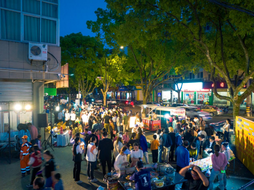 今年年初,柯城区启动城北片区城市有机更新工作,社区了解到部分涉及征收的商户没有找到合适的店铺,在柯城区综合行政执法局信安中队的指导下,社区利用书院菜场谋划夜市经济,免费提供便民摊位。随后,“好玩集了”夜市通过审批,于4月初开始招募摊主,有100余位摊主报名申请,近20位摊主通过筛选入驻。