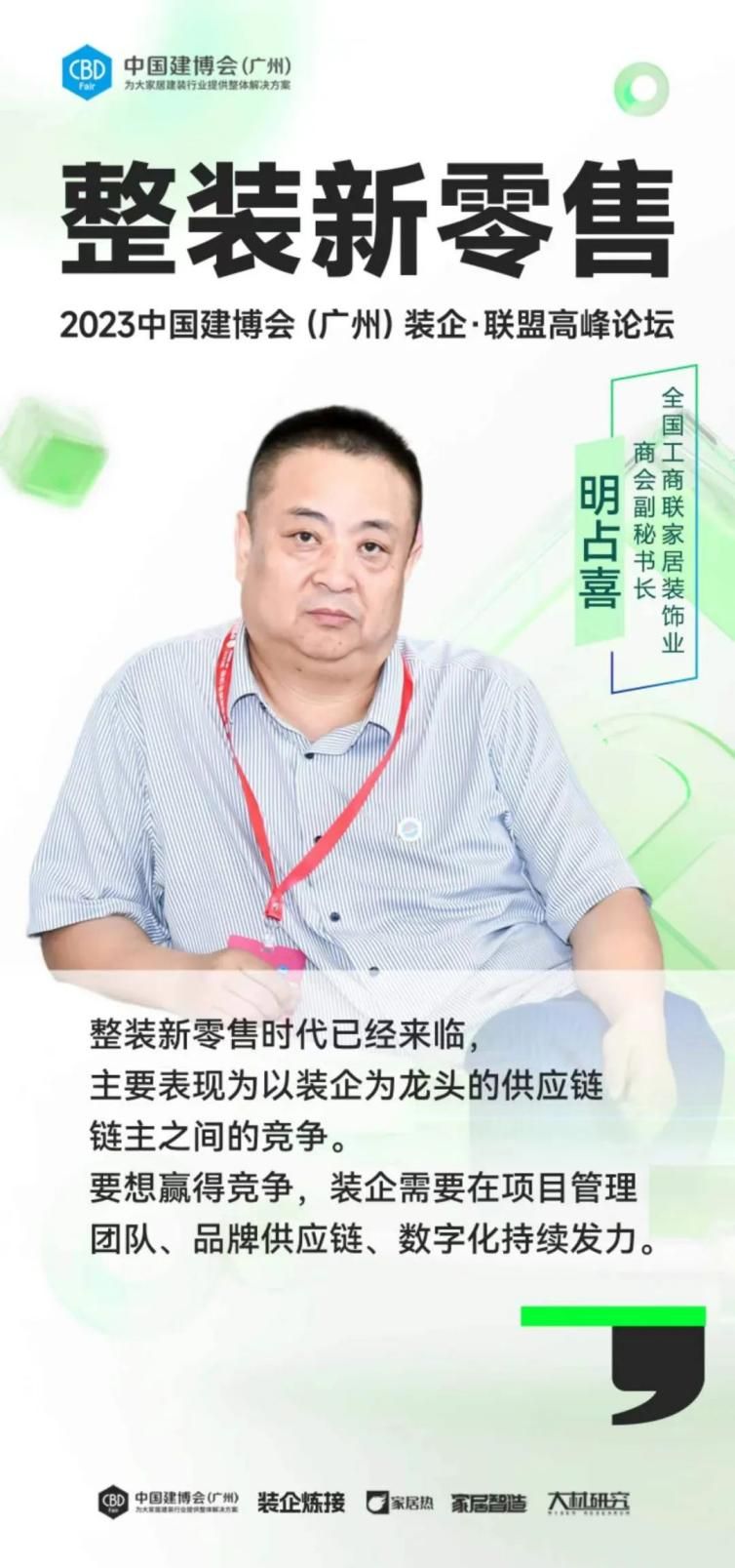 全国工商联家具装饰业商会副秘书长明占喜先生指出,整装新零售时代已经来临,要想赢得这场装企为龙头的供应链链主之间的竞争,装企需要在项目管理团队、品牌供应链、数字化持续发力。