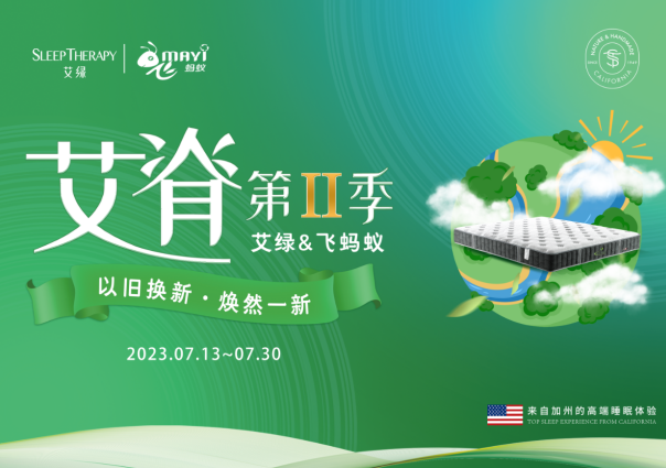 《艾脊第二季》全国联动活动,是美国艾绿床垫联合飞蚂蚁举办以旧换新·焕然一新全国联动活动,共同发起“绿色环保”倡议,倡导床垫回收,践行艾绿品牌的绿色环保睡眠理念。