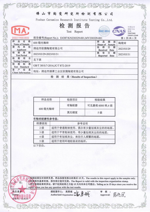 欧美亲肤质感砖采用最新研发的2.0肌肤釉料,结合多重技术工艺,不但颜值出众,耐磨性能更是表现优秀,经权威专业机构测试,其莫氏硬度可达5级以上,耐磨度高达6000转,工艺技术水平远超行业标准!