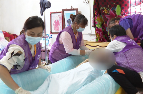 家住辛丰镇黄墟村的尹奶奶,在去年不慎摔倒骨折,自此只能卧床修养。据悉,尹奶奶有两个儿子,大儿子长期在外务工,由患小儿麻痹症的小儿子照顾尹奶奶的日常起居。由于体力的问题,在洗浴方面,尹奶奶的小儿子只能进行简单的擦拭。得知这一情况,乐惠居立刻组织了专业助浴小组,为老人定制助浴方案。