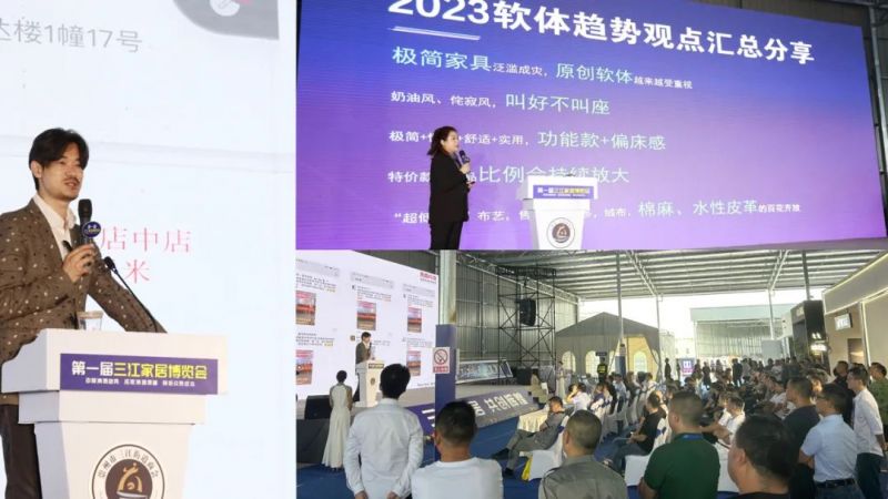 好家具崇州造,来三江见增长。第一届三江家居博览会是一个以“引领消费趋势、拓宽消费渠道、降低交易成本”为核心,展现理想家居生活方式,呈现家具全链配套、展示家居消费新场景的综合性展会。展会上名品云集,都市王朝、108度、韩品、库姿、金满帝、天博、望江洁具、新完美、库艺、上品、宏顺达教学设备、芭庭软床、尚霖、帝皇尊品、林鑫、都市名人、90印象、美卓尚品、琼昌钢木、玉田、锦蓉沙发材料、莎士比亚、维度商业空间等家居上下游全链品牌盛装亮相。展品紧跟科技、时尚、绿色三个大方向,围绕消费市场深耕产品研发,全链展示展销,打造了推动产业高质量发展的强大驱动力。
