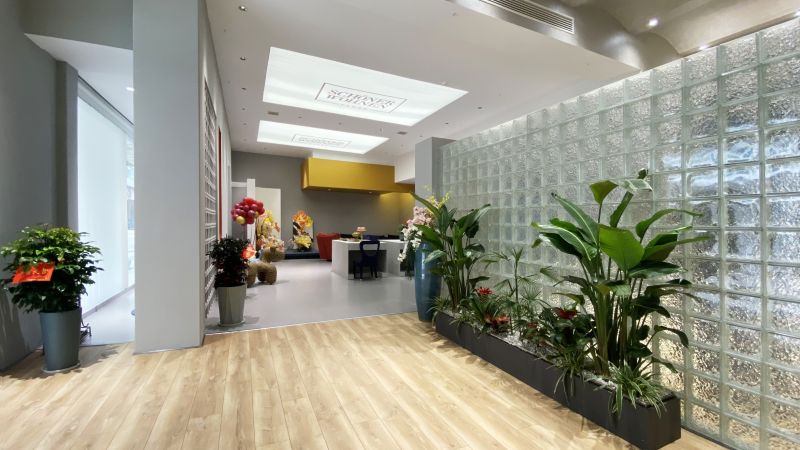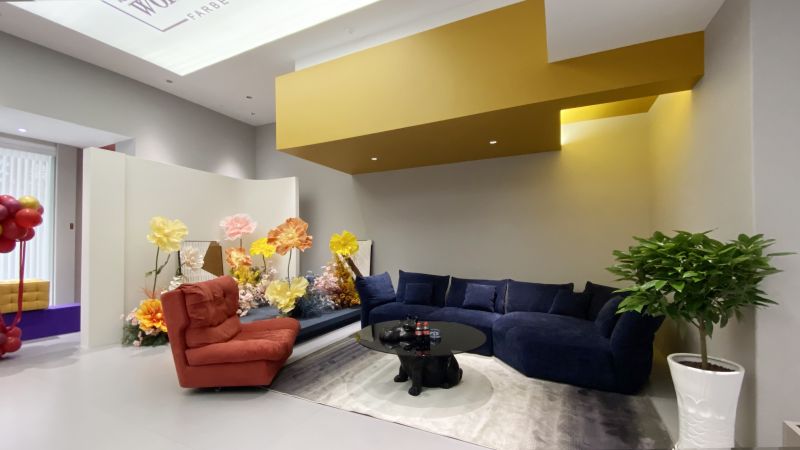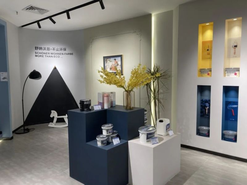在舒纳沃恩线下专卖店,不仅有产品的陈列,还有色卡、实刷效果展示,方便顾客更好的体验产品质量;同时,不同的门店配有不同的休息洽谈区,给顾客更好的选购体验。