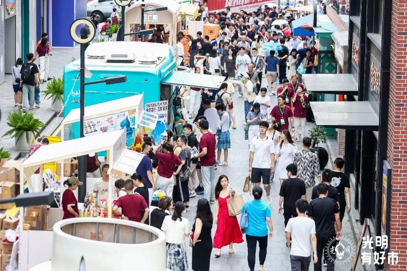 随着夕阳落幕,华灯初上,熙熙攘攘的吴江路美食飘香、歌声舞影……捧一杯美酒,吹吹晚风,人们流连于一个又一个美食摊位前,纵享夜晚生活的美好。“光明有好市”市集成为市民们夜晚吃喝玩乐的一个悠闲去处,也为点亮城市夜经济、提振消费做了一次高品质的探索。
