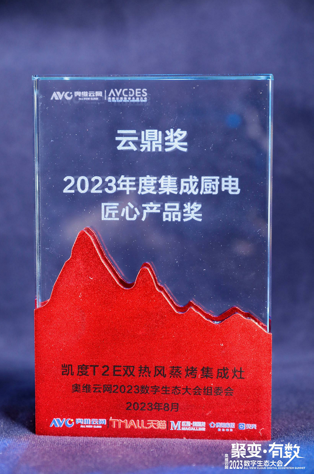 2023年8月25日,“迎变局·谋破局·塑新局”——2023数字生态大会-集成厨电创领峰会在杭州召开。在本次峰会上,凯度电器荣膺“2023年度集成厨电行业领军品牌奖”,凯度T2E双热风蒸烤集成灶获得“2023年度集成厨电行业匠心产品奖”。