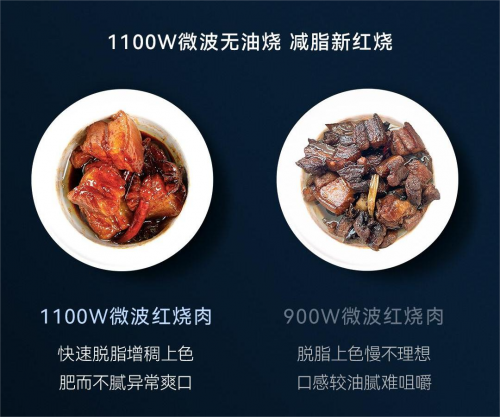 首先,凯度「微魔方」搭载了高达1100W的黄金第六档微波烹饪技术,通过微波烹饪实现了出色的红烧肉和小炒肉效果,甚至不亚于传统锅炒,同时也减少了使用油量,实现了便捷无油烟的健康烹饪方式。这一技术要求热效率达到50%以上,而市面上常见的微蒸烤箱热效率普遍不到50%。