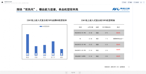 其中,“在新厨电领域,凯度是许多传统厨电品牌非常关注的品牌”,赵总特别强调了凯度的亮眼表现:在23H1线上嵌入复合机TOP5品牌80机型中,凯度位列第一;在23H1线上嵌入式复合机TOP5机型中,仅凯度一家就占据了整整4个席位,以压倒性的优势领跑其他品牌。他表示:“究其原因,凯度在技术上、产品布局上、以及市场定价上都有明显的优势”