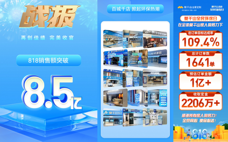 本次“818全民环保日”,云峰莫干山聚焦ENF级环保赛道,板材、全屋定制、地板三大板块产品均达到了ENF级环保标准,同时通过遍布全国的终端门店,与消费者建立深度链接,深挖家装痛点,构建全民环保家装体验,献礼终端消费者。超值实木套餐、整装套餐,抄底价惠民的同时保证产品品质,体现了超高性价比,优惠叠加,多重让利加码,这是一场牵动全民家装环保升级的营销活动,更是云峰莫干山构筑未来幸福健康人居赛道上的又一次里程碑事件。