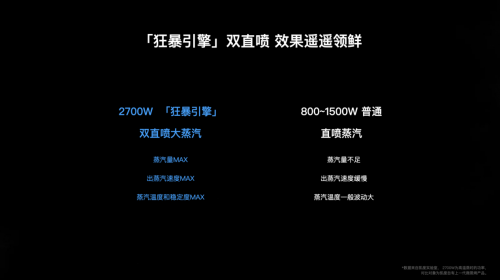 第三,是2700W狂暴引擎双直喷大蒸汽蒸发器(行业微蒸烤一体机蒸发器的功率普遍为800~1500瓦),与变频微波强强联手,使得食物蒸得快、热得匀、熟得透。水润蒸汽能够瞬间包裹食材,紧紧锁住营养与风味,还原食材的鲜美本味的同时,为食材充分“补水”。蒸烹的效率与效果直线上升,帮助用户打造理想的鲜嫩口感!