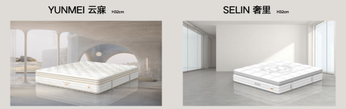 在选材上,“云眠”床垫和“云睡”床垫采用高档针织面料、天然乳胶、3cm蛋形海绵和静音袋装弹簧,使得床垫更加透气抗菌,耐磨耐用,在使用过程中通过谷峰落差散热,深度释压贴合曲线,适应多种睡姿变化;“云寐”床垫通过软包裹+硬支撑打造极致睡感,软包裹包括5cm的饱满舒适亲肤层和3cm记忆棉+2cm天然乳胶组成的填充层,硬支撑则依托双重弹簧支撑系统精准感应身体压力,与身体结构高度契合,可以按照人体工程学为消费者舒缓压力;“奢里”床垫则拥有5cm体感层+循环空气层的独特设计,材料选用美利奴羊毛棉、高分子3D材料、3cm天然乳胶、18cm柔性静音弹簧等,打造星级睡感和极致体验。