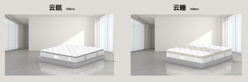 “云棉”定位于中端酒店(三星级以下及快捷连锁),为酒店提供极致性价的配置方案,能够为消费者创造有效护脊的健康睡眠环境。“云睡”定位于中高端酒店(四星级),专注人体工程学研究,科学打造舒适睡眠系统,为酒店消费者打造极致舒适度的配套产品。“云寐”定位于高端酒店(五星级),属于众多高端酒店的优选品牌,精心选材,科学配比,解密深度好睡眠,为酒店和消费者提供高品质、高专业的配套产品。“奢里”定位于奢华酒店(超五星级),只做量身定制款产品,采购全球天然甄选材料,纯手工打造,高标准要求,只为给酒店和消费者带来完美的奢华体验。