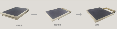在床具设计上,此次推出的联名款床具采用抽拉式、360°旋转床托两种设计。其中,抽拉式床托打破传统床托的一体式做法,分为上下两个主部件(面板与底框),实现面板的前后滑动,大幅减少客房服务员整理床品的劳动强度,提高工作效率。而采用360°旋转床托设计,客房服务员无需费力拖出床体,仅需打开锁扣,轻轻一拉,床板会带床垫整体弹出;客房服务员无需费弯腰围绕着床整理铺床,可以变成了原地半蹲的轻松旋转床板完成铺床,极大地提高了酒店客房服务员的工作效率,推动酒店运营效率实现跨越式增长。